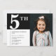 Elegant 5th birthday invitation Black Chic Photo