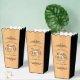 Celebrate their 5th wood wedding anniversary (and a movie-worthy love story) with these stylish popcorn style favour boxes! Elegant lettering on a faux wood grain bordered by black panels add a memorable touch for this special occasion and milestone. Personalise with couple's names, dates of marriage, and messages.