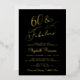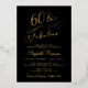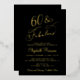 Elegant black 60th birthday party invitation with "60 & Fabulous" and your name in chic scripts and the event details in simple lettering, all rendered in your choice of genuine gold, silver or rose gold foil.
