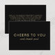 Elegant black 60th birthday party thank you card featuring "Cheers To You And Thank You" showcased in a blend of classic serif and simple gold typography. On the back, add your personal message and name, or leave blank for a hand-written note.