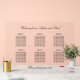 Elegant 6 Table Seating Chart Acrylic Sign, please personalise the names of the couple and the names of the guests along with any of the other text that you may wish to personalise. An elegant seating chart featuring stylish black text in a clean minimalistic layout on a clear transparent background.