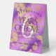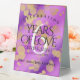 Add an extra special touch to 6th amethyst wedding anniversary celebrations with this stylish table tent sign! Elegant lettering with gold-dusted hexagonal confetti on an amethyst purple background add a memorable touch for this special occasion and milestone. Customise with couple's names, dates of marriage, and congratulatory messages.