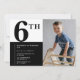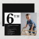 Elegant 6th birthday invitation Black Chic Modern calligraphy typography classic elegant boy
