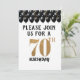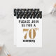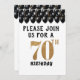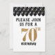 Celebrate a milestone 70th birthday with this elegant and sophisticated invitation card. Featuring a large "70" in the centre, surrounded by balloons, confetti, and a classy colour palette of gold, black, and white. This invitation card sets the tone for a memorable and stylish celebration. Perfect for inviting friends and family to join in the festivities and honour this special occasion.