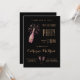 Celebrate her 70th birthday in style with this black and gold birthday party invitation. A watercolor of a pink champagne bottle popped open has a label that can be personalised with her birth year or initials, this year or other text up to 4 letters. Elegant typography is featured throughout, and her name is set off in a pretty script. Venue and party details are separated by a watercolor of two champagne glasses filled with bubbly pink champagne. You can personalised the birthday to another year if desired.