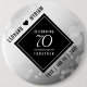Celebrate the 70th platinum wedding anniversary with this stylish button! Elegant black and white lettering with hexagonal confetti on a platinum foil background add a memorable touch for this special occasion and extraordinary milestone. Personalize with the couple's names and dates of marriage.