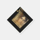 Elegant square black photo frame with golden floral design in the corner. Design on paper napkin with texts to customise for 75th Birthday Party.