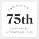 Elegant 75th Party Black and White or Any Colour Thank You A simplistic modern fully customisable design for your seventy fifth birthday party favours. You can also change fonts and colours if you wish via customise further.