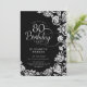Black silver floral 80th birthday party invitation. Elegant design featuring roses, faux silver foil and typography script font. Trendy invite card perfect for a stylish female bday celebration. Can be customised to any age. Personalise with your own details. Printed Zazzle invitations or instant download digital printable template.