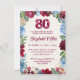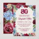 Elegant 80th Birthday – Burgundy Floral Design Invitation.