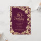 Burgundy gold floral 80th birthday party invitation. Elegant design featuring roses, faux gold foil and typography script font. Trendy invite card perfect for a stylish female bday celebration. Can be customised to any age. Personalise with your own details. Printed Zazzle invitations or instant download digital printable template.