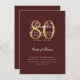 Elegant 80th Birthday Program Gold Burgundy Menu Invitation