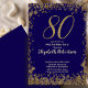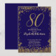 Elegant 80th Blue Birthday Invitation Gold Sequin
