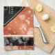 Celebrate the 8th bronze wedding anniversary with this stylish hand towel! Elegant black and white lettering with hexagonal confetti on a bronze foil background bordered by black and white bars add a memorable touch for this special occasion and milestone. Personalise with the couple's names and dates of marriage.