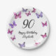 Elegant 90th Birthday Butterflies Custom Name Paper Plate