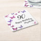 Elegant 90th Birthday Butterflies Custom Name Square Paper Coaster