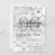 Elegant 90th Birthday Party Floral Silver White Invitation