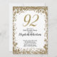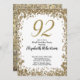 This pretty and elegant gold 92nd birthday invitation for her is perfect for a nice party and will set a celebratory tone. The text is larger so you won't need to squint to see it!