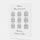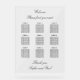 Elegant 9 Table Seating Chart Acrylic Sign, please personalise the names of the couple and the names of the guests along with any of the other text that you may wish to personalise. An elegant seating chart featuring stylish black text in a clean minimalistic layout on a clear transparent background.