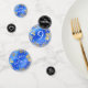 Add an extra special touch to 9th lapis lazuli wedding anniversary celebrations with this elegant table confetti set! Elegant white serif lettering with pyrite-dusted hexagonal confetti on a speckled, royal blue or black background add a memorable touch for this special occasion and milestone. Customise with the happy couple's names, years of marriage, and congratulatory message(s).