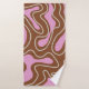 Enhance your summer routine with this elegant bath towel featuring a modern abstract brown and pink wavy stripe pattern. Perfect for adding a stylish touch to your bathroom or poolside setup.