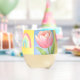 Elegant Abstract Floral Checkerboard Pattern Stemless Wine Glass