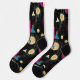 Add sophistication to your wardrobe with these elegant abstract socks, featuring rich gold, magenta, and teal accents on a sleek black background. The design combines bold circular shapes, dynamic brushstrokes, and modern geometric patterns for a striking and contemporary aesthetic. Perfect for trendsetters and art enthusiasts, these socks are a stylish and colourful statement piece.