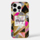 Chic unique abstract gold silver hot pink black geometric iPhone 16 Case. To make it extra special, it is also monogrammed and personalised with name or initials or any text you like, click the "customise further" link and use the design tool to modify the design if you like.