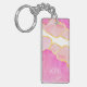 Elegant Abstract Pink Gold White Modern INITIALS Key Ring