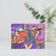 Elegant abstract retro red blue floral watercolor postcard