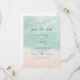 Romantic coastal themed wedding save the dates features beautiful turquoise abstract watercolor sparkling ocean wave and beach background, toped with stylish script and elegant font event details, modern and simple, great for sand beach wedding, tropical destination wedding, coastal ocean themed wedding.