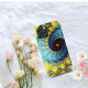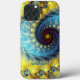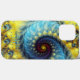 Modern and elegant abstract spiral fractal blue and yellow girly colour with name monogrammed personalised iphone 13 pro max case