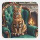 Elegant Abyssinian Cat Regal Holiday Portrait Art Square Sticker