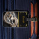 Elevate your style with this exclusive Luggage Tag, featuring a stunning white and gold acoustic guitar illustration adorned with intricate eagle and bear details. This vibrant design, set against a bold black background, captures the artistry of music and nature, creating a unique accessory that makes a powerful statement.