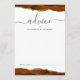 This elegant design features top and bottom borders of burnt orange watercolor agate trimmed with gold faux glitter. The word "advice" appears in handwriting calligraphy script with flourishes at the beginning and end. Personalize with the names of the newlyweds in charcoal gray copperplate font. A line at the bottom provides space for guests to sign their advice and wishes for the couple.