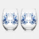 Elegant All Blue Chrysanths Wedding Stemless Wine Glass
