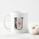 Elegant Alphabet Coffee Cup with Pink Rose Design