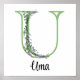 Elegant alphabet letter U Lavender Eucalyptus Poster