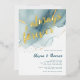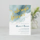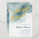 A beach-themed wedding invitation template that features a painted, abstract watercolor scene of a beach and waves with a gold ink pour effect (the gold is a digital effect, not real foil!) and modern calligraphy with the title "always and forever" in real gold foil. Classy and elegant, simple and modern, it is a lovely choice for a beach wedding during any season, for a modern couple.