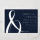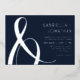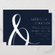 An elegant navy blue wedding invitation features a bold silver foil ampersand with silver foil typography. Personalise all the important details including bride and groom name, wedding date and location.