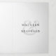 Elegant black and white trifold wedding invitation featuring a simple and minimal design with a large ampersand behind the names of the bride and groom. This classic invitation includes traditional wording for a Catholic wedding but the wording may be updated for a non Catholic wedding. The back has your favourite photo (optional). You may remove the photo in the design editing tool. An elegant choice that is perfect for a formal wedding.