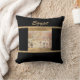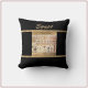 Gorgeous black throw pillow with tan abstract accent lines and a centre tile featuring Egyptian hieroglyphics. A stunning centerpiece pillow adding flair and impact to any sofa or bed!