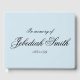 This minimalist funeral or memorial guestbook features the message "In memory of", along with a custom name, and birth/death dates. It could be used to record condolences for the relatives and friends of somebody who has recently passed away.