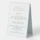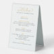 Elegant and modern wedding reception menu Table Tent Sign with gold script and headings.