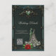 Elegant and romantic vintage design. The dark green vintage background gives the design a timeless touch, while the ornate frame harmoniously encloses the overall image. A large emerald green heart adorned with delicate gold accents and embedded in a decorative flourish symbolises the couple's love and connection. The main focus is on the artfully designed silhouette of a bride and groom united in a graceful dance.