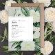 Elegant classy wedding theme featuring white floral green botanical design with black text.