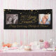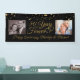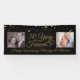 Celebrate a 50th golden wedding anniversary (or any anniversary) with this personalised black and gold 2 photo banner with an editable elegant calligraphy script typography design 50 YEARS INTO FOREVER accented with faux gold metallic hearts and personalised with your custom text. PHOTO TIP: For fastest/best results, choose a photo with the subject in the middle and/or pre-crop it to a similar shape as shown BEFORE uploading and use the CHANGE tab next to the sample photo in the PERSONALIZE section. CHANGES: Change the background colour, select a styled graphics background or change the text font style, colour, size and placement for a custom look by clicking on CUSTOMIZE FURTHER in the PERSONALIZE section. Contact the designer via Zazzle Chat or makeitaboutyoustore@gmail.com if you'd like this design modified, on another product or would like coordinating items.
