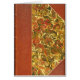 Old antique leather bound book cover binding, with ornate spiral swirl pattern.
