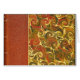 Old antique leather bound book cover binding, with ornate spiral swirl pattern.