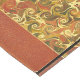 Old antique leather bound book cover binding, with ornate spiral swirl pattern.